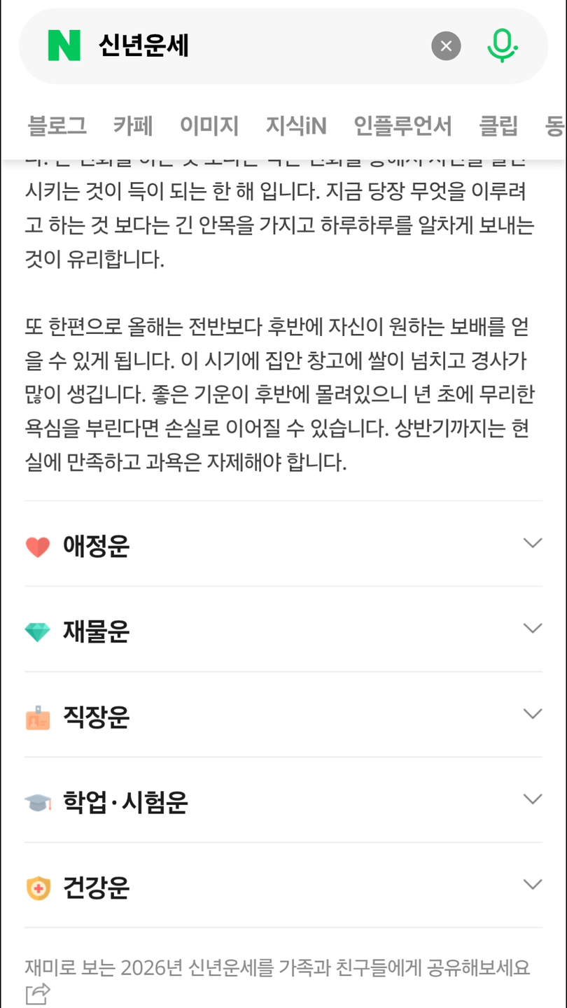 - 1. 네이버 앱을 열고 검색창에 ‘오늘의 운세’나 ‘신년운세’를 입력합니다.